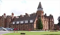 Longdon Hall, with its remaining manorial rights, was later bought by a solicitor, Mr. J. B. Clarke of Birmingham in 1899 and soon afterwards sold to Mr. Alfred Lovekin, a silversmith.[21] Mr Lovekin also leased land near Solihull town centre from the Chattock family of Castle Bromwich, on which he built the Jacobean style Tudor Grange Hall. After Mr Lovekin's death, Tudor Grange Hall was sold to Sir Alfred Bird, 1st Baronet, a chemist and politician, who would later leave the land for creation of a Tudor Grange grammar school and Tudor Grange Park. Longdon hall was eventually sold to a nearby golf course.[34]