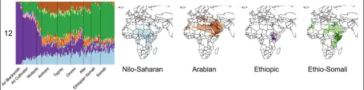 - ^ Molinaro, Ludovica; Montinaro, Francesco; Yelmen, Burak; Marnetto, Davide; Behar, Doron M.; Kivisild, Toomas; Pagani, Luca (11 December 2019). "West Asian sources of the Eurasian component in Ethiopians: a reassessment". Scientific Reports. 9 (1): 18811. Bibcode:2019NatSR...918811M. doi:10.1038/s41598-019-55344-y. ISSN 2045-2322. PMC 6906521. PMID 31827175.