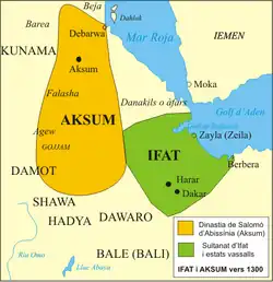 The first clear written reference of the sobriquet Somali dates back to the early 15th century CE during the reign of Ethiopian Emperor Yeshaq I who had one of his court officials compose a hymn celebrating a military victory over the Sultanate of Ifat.[65] Simur was also an ancient Harari alias for the Somali people.[66]