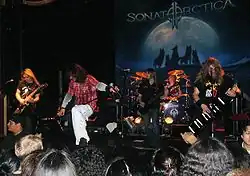 Sonata Arctica is a Finnish power metal band from the town of Kemi. Created as a hard rock band named Tricky Beans, they later changed to Tricky Means and finally to Sonata Arctica, when they shifted to power metal.[1] The current lineup consists of drummer Tommy Portimo, lead singer Tony Kakko, keyboardist Henrik Klingenberg, guitarist Elias Viljanen and bassist Pasi Kauppinen. All the musicians of the band's history except Portimo also acted as backing vocalists.