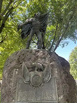 Before dawn on Sunday, June 14, 1846, thirty-three Americans, already in rebellion against the Alta California provincial government of Mexico, arrived in Sonoma. Some of the group had traveled from the camp of United States Army Brevet Captain John C. Frémont (1813-1890), who had entered California illegally from across the Great Plains and through the Rocky Mountains chain from the east in late 1845 with his exploration and mapping expedition. Others had joined along the way. As the number of immigrants arriving in California had swelled, the Mexican government barred them from buying or renting land and threatened them with expulsion because they had entered without official permission.[23][24] Mexican officials were concerned about the coming Mexican–American War of 1846-1848, with the United States coupled with the growing influx of American and other European immigrants into California, both by overland wagon trains from the east and by ship on the West Coast and Pacific Ocean.[25]