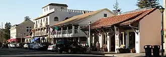 ![]() ![]() ![]() ![]() ![]() Top: Sonoma City Hall (left) and shops around Sonoma Plaza (right); middle: shops on Spain St.; bottom: Mission San Francisco Solano (left) and Buena Vista Winery (right) | |