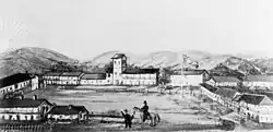 A group of rebellious Americans had departed from Captain Frémont's military camp on June 10 and captured a herd of 170 Mexican government-owned horses being moved by Californio / Mexican Army soldiers from San Rafael and Sonoma to Alta California's Commandante General José Castro in Santa Clara.[26] The insurgents next determined to seize the weapons, gunpowder and materiel stored in the Sonoma Barracks and to deny Sonoma to the Californios as a rallying point north of the San Francisco Bay.[27]