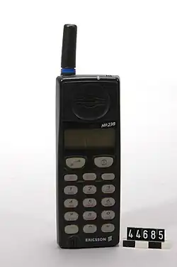 The Swedish company Ericsson had been making mobile cell phones since the 1980s, with their very first handheld device being the Hotline Pocket introduced in 1987.[19] In the United States, Ericsson partnered with General Electric in the early nineties as Ericsson Mobile Communications (ECS), primarily to establish a US presence and brand recognition. General Electric eventually left the joint venture.