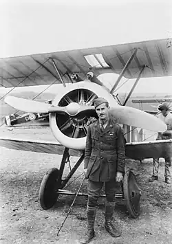 In June 1917, the Sopwith Camel entered service with No. 4 Squadron of the Royal Naval Air Service, which was stationed near Dunkirk, France; this was the first squadron to operate the type.[19] Its first combat flight and reportedly its first victory claim were both made on 4 July 1917.[6] By the end of July, the Camel also equipped No. 3 and No. 9 Naval Squadrons; and it had become operational with No. 70 Squadron of the Royal Flying Corps.[8] By February 1918, 13 squadrons had Camels as their primary equipment.[20] The Camel proved in service to have better manoeuvrability than the Albatros D.III and D.V and offered heavier armament and better performance than the Pup and Triplane. Together with the S.E.5a and the SPAD S.XIII, it helped to re-establish the Allied aerial superiority for a time. While flying a Sopwith Camel with the serial number B6313, the Canadian ace Billy Barker was credited with shooting down 46 aircraft. The total aircraft credited to Barker while flying B6313 is the highest attributed to a single aircraft during the war.[21]