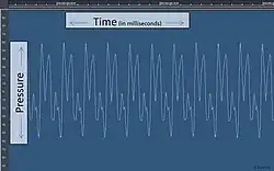 In order to understand the sound more fully, a complex wave such as the one shown in a blue background on the right of this text, is usually separated into its component parts, which are a combination of various sound wave frequencies (and noise).[10][11][12]