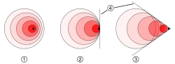 The sound barrier or sonic barrier is the large increase in aerodynamic drag and other undesirable effects experienced by an aircraft or other object when it approaches the speed of sound. When aircraft first approached the speed of sound, these effects were seen as constituting a barrier, making faster speeds very difficult or impossible.[3][4] The term sound barrier is still sometimes used today to refer to aircraft approaching supersonic flight in this high drag regime. Flying faster than sound produces a sonic boom.