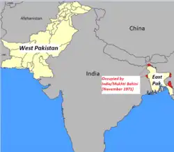 India and Pakistan clashed several times in the decades after Independence, with disputes over Kashmir playing a significant role.[169] In 1971, the eastern half of Pakistan seceded with help from India and became the People's Republic of Bangladesh after the traumatic Bangladesh Liberation War.[170] This, along with India and Pakistan gaining nuclear weapons soon afterwards, increased tensions between the two countries.[171] The Cold War decades also contributed to the divide, as Pakistan aligned with the West and India with the Soviet Union;[172][173] other factors include the time period after the 1962 Sino-Indian War, which saw India and China move apart while Pakistan and China built closer relations.[174]