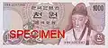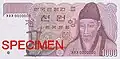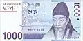 - ^ a b "Brief History of current Korea notes in circulation; 1,000 won note". Bank of Korea. Archived from the original (Flash and HTML) on September 27, 2007. Retrieved November 9, 2006.