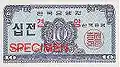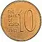 ₩10 | 22.86 mm | 4.06 g | High brass 65% copper 35% zinc |