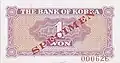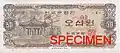 In 1946, the Bank of Joseon introduced 10 and 100 won notes. These were followed in 1949 by 5 and 1,000 won notes.