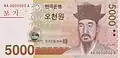 - ^ a b c "Brief History of current Korea notes in circulation; 5,000-won note". Bank of Korea. Archived from the original (Flash and HTML) on September 27, 2007. Retrieved November 9, 2006.