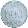 ₩500 | 26.5 mm | 7.7 g | Red-crowned crane, value (hangul) | 1982 | June 12, 1982 | Series I (가) | |||