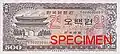 Yi Sun-sin, value, bank title (hangul) | Value (digit), year of minting | 1970 | November 30, 1970 | |||