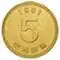 ₩5 | 20.4 mm | 2.95 g | High brass 65% copper 35% zinc |
