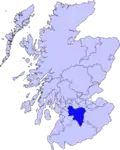 South Lanarkshire covers the southern part of the historic county of Lanarkshire. Lanarkshire had existed as a shire from around the time of King David I, who ruled Scotland from 1124 to 1153.[3] The county took its name from the original county town at Lanark, which had been the site of the first Parliament of Scotland under Kenneth II in 978.[4]