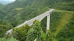 Subangdaku, the province's largest river, created an issue over the area. It can be considered a braided river composed of several channels from near areas that divide and reunite forming an alluvial fan with a very wide floodplain. As such, the river usually became hazardous during typhoons after heavy rains.[16] The river has overflowed, spilling its waters on the low-lying towns of Liloan and San Vicente and destroyed an ongoing flood control project worth millions of pesos.[17] The river meanders along its course, ever changing its way over time.[18] During the time it floods, it destroys every side of its course. In 2001, portions of the road and banks in Barangay San Miguel along the river were destroyed,[16] including part of the Philippine National Road. Local officials blamed the rechannelization and uncontrolled quarrying of gravel and sand at the side of the river as the cause of the flood.[19] At a meeting on March 18, 2002, one of the representatives of a government agency alleged that the reason of the incidents of flood and other environmental problems in the river was due to the "Philippine Fault" which caused rocks to rumble down. However, the reason was contended because the fault is a geological feature and environmental problems in the province just occurred that time.[16]