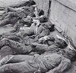 Torture was used on a wide scale in various prisons, especially in those prisons that were located in small towns. Prisoners were scalded with boiling water in Bobrka; in Przemyślany, people's noses, ears, and fingers were cut off and their eyes were also cut out; in Czortków, the breasts of female inmates were cut off; and in Drohobycz, victims were bound together with barbed wire.[44] Similar atrocities occurred in Sambor, Stanisławów, Stryj, and Złoczów.[44] According to historian, Prof. Jan T. Gross: