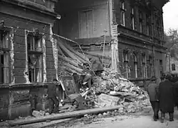 After the Battle of Kruty, which successfully delayed the Bolshevik advance on Kyiv and gave time for those who wanted to evacuate, the Red Guards approached the outskirts of Kyiv on February 4, 1918, where Mikhail Muravyov gave the order to begin the assault.[11] During the capture of the capital, poison gas was used and massive shelling was carried out, which did not stop for several days (up to 15 thousand shells), as a result of which, among other things, the house of Mykhailo Hrushevsky was destroyed.[12]