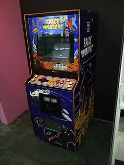 The company had installed over 100,000 machines in Japan by the end of the year.[15][54] To cope with the demand, Taito licensed the overseas rights to Midway for distribution outside of Japan near the end of 1978.[1][2][9] Midway released upright and cocktail versions.[55] By December 1978, Taito had to import Midway cabinets into Japan to meet the country's demand. It added Japanese instruction cards to the cabinets and referred to them as Space Invaders M.[45][56] The company also released a color version of T.T. Space Invaders that same month.[56] Success prompted Taito to invest in manufacturing and expand globally, leading the company to found a subsidiary, Taito America, in the United States in 1979.[57] Taito then filed a trademark request for its arcade game with the United States Patent and Trademark Office on December 10, 1979.[58] The company produced 200,000–300,000 units for the Japanese market by June 1979 and increased production to 25,000–30,000 units per month with Taito projecting to manufacture 400,000 machines in Japan by the end of 1979.[50] By the end of 1979, an estimated 750,000 Space Invaders machines were installed worldwide, including 400,000 in Japan and 85,000 in the United Kingdom.[9] Within a year of releasing in the United States, 60,000 units were in the country;[59][60][42] the number of units in the United States eventually reached 72,000 by 1982.[61] Nishikado wanted to design newer hardware to stay competitive, but the widespread demand led Taito to support the existing Space Invaders hardware by creating new games compatible with it. This provided other companies time to develop technology that could match Taito's.[28] Space Invaders cabinets have since become collector's items, with the cocktail and cabaret versions the rarest.[55] At the end of 2003, Taito announced plans to produce 10,000 Space Invaders cabinets to sell again for the game's 25th anniversary.[62]