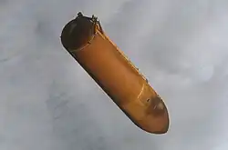2. ^ STS-1 and STS-2 were the only Space Shuttle missions that used a white fire-retardant coating on the external tank. Subsequent missions did not use the latex coating to reduce the mass, and the external tank appeared orange.[15]: 48