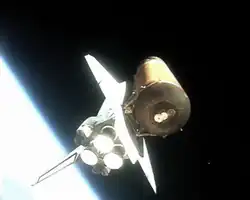 ![]() Discovery in orbit in 2011, during STS-133, the orbiter's final flight | |