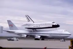 Beginning in late 1995, the orbiter underwent a nine-month Orbiter Maintenance Down Period (OMDP) in Palmdale, California. This included outfitting the vehicle with a fifth set of cryogenic tanks and an external airlock to support missions to the International Space Station. As with all the orbiters, it could be attached to the top of specialized aircraft and did so in June 1996 when it returned to the Kennedy Space Center, and later in April 2012 when sent to the Udvar-Hazy Center, riding piggy-back on a modified Boeing 747.[10]