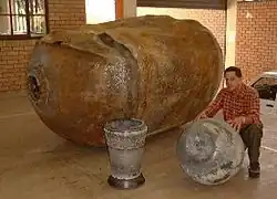 Large camera, with a man standing next to it for scale