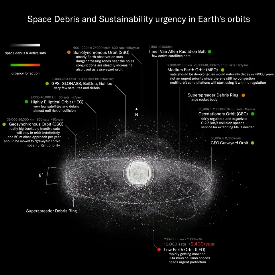 As of 2020, there were 8,000 metric tons of debris in orbit, a figure that is expected to increase.[51]