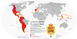 ![]() ![]() ![]() ![]() From left to right, top to bottom: the Congress of Chilpancingo (1813), the Congress of Cúcuta (1821), the Crossing of the Andes (1817), the extent of the Spanish Empire on the eve of the conflict in 1810, according to the Cortes de Cádiz | |||||||||