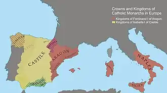 Crowns and kingdoms of the Catholic Monarchs in Europe (1500)