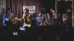 Before Kapranos's appearance in Los Angeles, Sparks and Franz Ferdinand had been collaborating and in late 2014 had recorded an album together, produced by John Congleton.[63] The supergroup, named FFS, was unveiled in March 2015 with a short teaser video of song "The Power Couple".[59][63][64] An eponymous studio album was released in June 2015.[65] The album was promoted with appearances on the contemporary British music television show Later with Jools Holland and the Glastonbury Festival.[66]