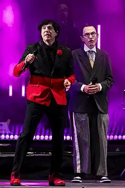 ![]() Sparks during a performance at the Royal Albert Hall in London, England, May 29, 2023. From left to right: Russell Mael (vocals) and Ron Mael (keyboards). | |