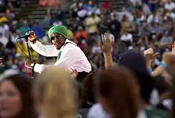 André 3000's solo performance of "Hey Ya!" at the 46th Annual Grammy Awards on February 8, 2004, ignited controversy, as its imagery was described as "racist" and disrespectful towards Native American culture.[63] He subsequently performed the song at the 2004 Kids' Choice Awards on April 3.[64] Outkast performed together at the 2004 MTV Video Music Awards Japan on May 23; Big Boi held solo concerts at the Shinkiba Studio Coast in Tokyo the following day,[65] and at the launch of Calvin Klein's fragrance Eternity Moment in New York City on June 3.[66] The duo performed "Roses" at the BET Awards 2004 on June 29,[67] and a medley of "The Way You Move", "Hey Ya!", "GhettoMusick" and "Prototype" at the 2004 MTV Video Music Awards on August 29.[68] André 3000 then performed at Fashion Rocks on September 8,[69] while Big Boi performed "GhettoMusick" with Patti LaBelle at the 2004 World Music Awards on September 15.[70] In September 2023, Speakerboxxx/The Love Below was reissued on two limited-edition vinyl pressings, in commemoration of its 20th anniversary.[71]