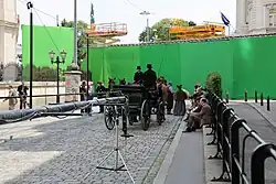 A period drama set in Vienna uses a green screen as a backdrop, to allow a background to be added during post-production.