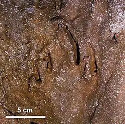 Both species also differ slightly in their post-cranial proportions. T. floridanus has been described as a relatively long-limbed species compared to T. ornatus, with the humerus, femur and neck being notably longer compared to body length.[19] While the forelimbs of T. ornatus are longer than their hindlimbs (likely due to arboreal activity),[25] the hindlimbs of T. floridanus are the same length as their forelimbs.[19] Additionally, T. ornatus has also been described as possessing much more gracile limb bones.[20] However, the paws of T. floridanus are proportionally shorter and smaller than T. ornatus.[19] Kurtén compared the differences between the Tremarctos species as the differences between brown bears and Eurasian cave bears.[20]