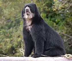The spectacled bear (Tremarctos ornatus), also known as the Andean bear, is a species of bear native to the Andes Mountains in northern and western South America. It is the only living species of bear native to South America, and the last remaining short-faced bear (subfamily Tremarctinae). Unlike other omnivorous bears, the diet of the spectacled bear is mostly herbivorous. The species is classified as Vulnerable by the IUCN because of habitat loss.