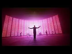 The video promo for "Speed of Sound" was shot on a Los Angeles sound stage on 22 and 23 April 2005.[37] Shooting took place on large sets backed by large light-emitting diode (LED) displays developed by Element Labs.[38] The performance-based video was directed by Mark Romanek.[39][40] The video features the band performing in front of a curved ellipse wall that consists of 640 Element Labs' VersaTubes placed on 6-inch (150 mm) centres.[41]