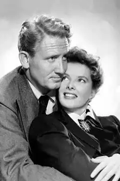 Tracy was set to star in a film version of The Yearling for 1942, but several on-set difficulties and bad weather on location forced MGM to shelve the production.[114] With the end of that project, he became available for the new Katharine Hepburn film, Woman of the Year (1942). Hepburn greatly admired Tracy, calling him "the best movie actor there was".[115] She had wanted him for her comeback vehicle, The Philadelphia Story (1940).[116] Hepburn was delighted that Tracy was available for Woman of the Year, saying "I was just damned grateful he was willing to work with me."[117] The romantic comedy performed well at the box office and received strong reviews.[118] William Boehnel wrote in the New York World-Telegram, "To begin with, it has Katharine Hepburn and Spencer Tracy in the leading roles. This in itself would be enough to make any film memorable. But when you get Tracy and Hepburn turning in brilliant performances to boot, you've got something to cheer about."[118]