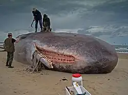 - ^ Jacobsen, Jeff K.; Massey, Liam; Gulland, Frances (May 2010). "Fatal ingestion of floating net debris by two sperm whales (Physeter macrocephalus)". Marine Pollution Bulletin. 60 (5): 765–767. Bibcode:2010MarPB..60..765J. doi:10.1016/j.marpolbul.2010.03.008. PMID 20381092.
