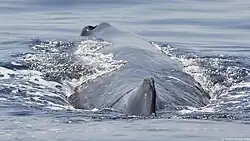 In contrast to the smooth skin of most large whales, its back skin is usually wrinkly and has been likened to a prune by whale-watching enthusiasts.[50] Albinos have been reported.[12][51]