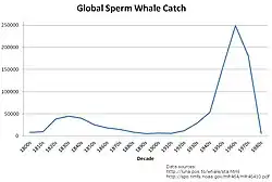 - ^ Over 680,000 officially reported at "Whaling Statistics". Archived from the original on 15 October 2019. Retrieved 15 October 2008.. In addition, studies have found that official reports understated USSR catches by at least 89,000 "Sperm Whale (Physeter macrocephalus) California/Oregon/Washington Stock" (PDF). Retrieved 16 October 2008. Furthermore, other countries, such as Japan, have been found to have understated catches. "The RMS – A Question of Confidence: Manipulations and Falsifications in Whaling" (PDF). Archived from the original (PDF) on 7 October 2008. Retrieved 16 October 2008.
