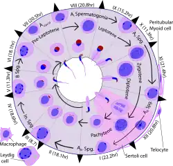 - ^ Amann RP (2008). "The cycle of the seminiferous epithelium in humans: a need to revisit?". J Androl. 29 (5): 469–487. doi:10.2164/jandrol.107.004655. PMID 18497337.