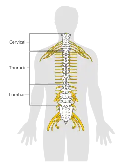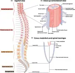 - ^ "Spinal Cord Gross Anatomy". Archived from the original on December 21, 2015. Retrieved December 27, 2015.