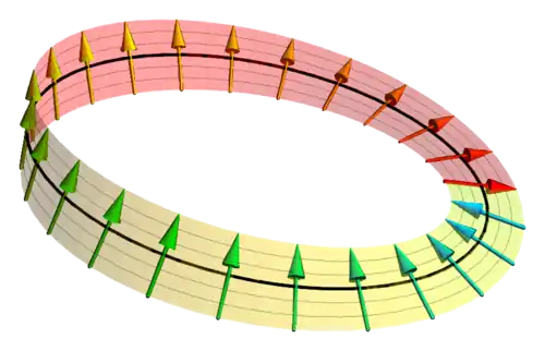 - ^ Spinors in three dimensions are points of a line bundle over a conic in the projective plane. In this picture, which is associated to spinors of a three-dimensional pseudo-Euclidean space of signature (1,2), the conic is an ordinary real conic (here the circle), the line bundle is the Möbius bundle, and the spin group is SL2(R). In Euclidean signature, the projective plane, conic and line bundle are over the complex instead, and this picture is just a real slice.