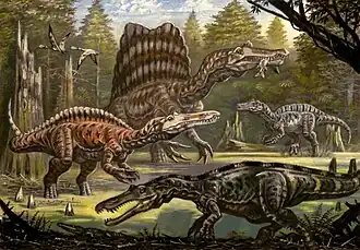 - ^ a b Holtz Jr., T. R. (1998). "Spinosaurs as crocodile mimics". Science. 282 (5392): 1276–1277. Bibcode:1998Sci...282.1276H. doi:10.1126/science.282.5392.1276. S2CID 16701711.