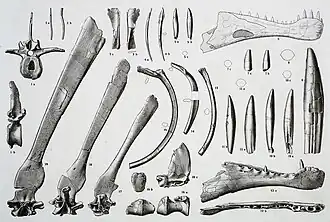- ^ Lapparent, A.F. de; and Lavocat, R. (1955). "Dinosauriens." In: Piveteau, J., editor. Traité de Paléontologie. Tome V. La Sortie des Eaux. Naissance de la Tétrapodie. L'Exubérance de la Vie Végétative. La Conquête de l'Air. Amphibiens. Reptiles. Oiseaux. Paris: Masson et Cie, pp. 785–962.