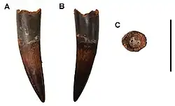 - ^ Hendrickx, Christophe; Mateus, O.; Araújo, R.; Choiniere, J. (2019). "The distribution of dental features in non-avian theropod dinosaurs: Taxonomic potential, degree of homoplasy, and major evolutionary trends". Palaeontologia Electronica. 22 (3): 1–110. doi:10.26879/820. hdl:11336/146011. ISSN 1094-8074. S2CID 213164229.