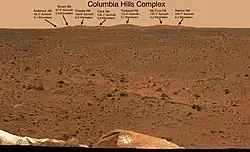 Annotated Columbia Hills panorama from the Spirit landing site