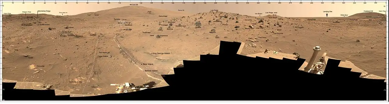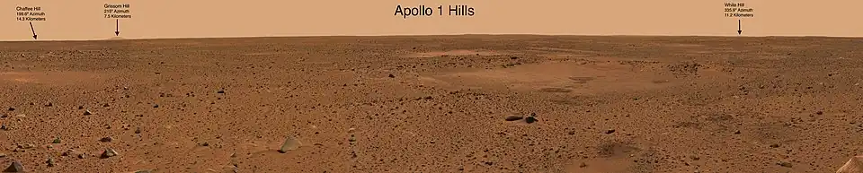 Annotated Apollo Hills panorama from the Spirit landing site